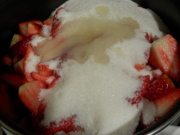 Corta las fresas en trozos y ponlos en una olla.