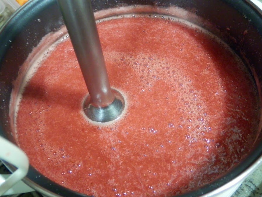 Tritura con la batidora y envasa en frascos de cristal esterilizados.