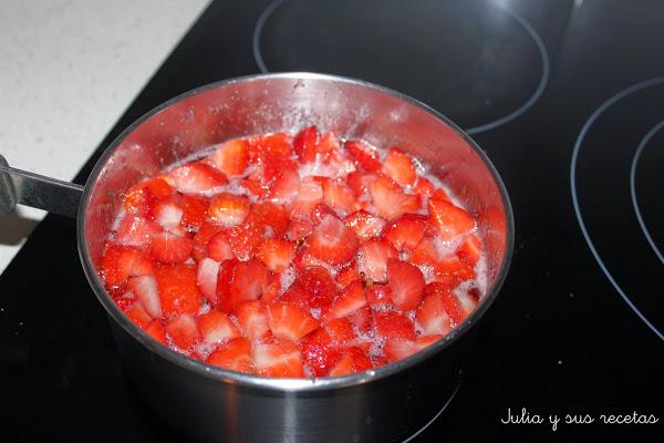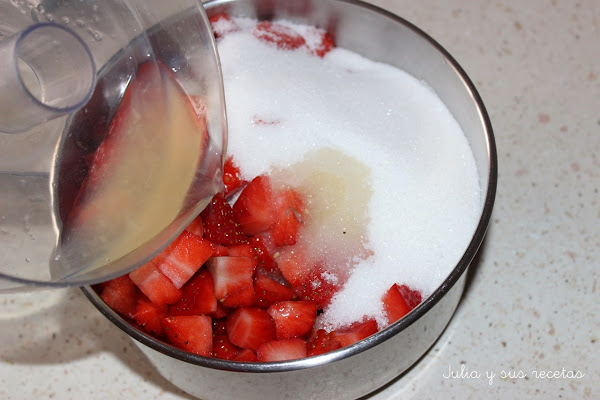 En una cazuela ponemos las fresas troceadas , el azúcar y el zumo de limón.