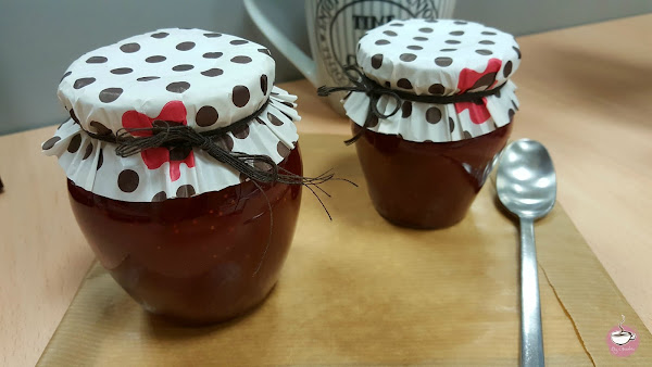 Si además queréis hacer un regalo (con esta o cualquier otra mermelada) sólo hay que esterilizar los tarros y embotar. Un papel mono y una cuerda de colores y voilà. Si además lo metéis en una caja con alguna otra elaboración casera quedaréis de lujo con el afortunado receptor de vuestro presente...