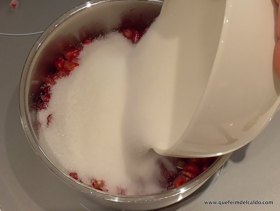 Ponemos en un cazo los granos de la granada.