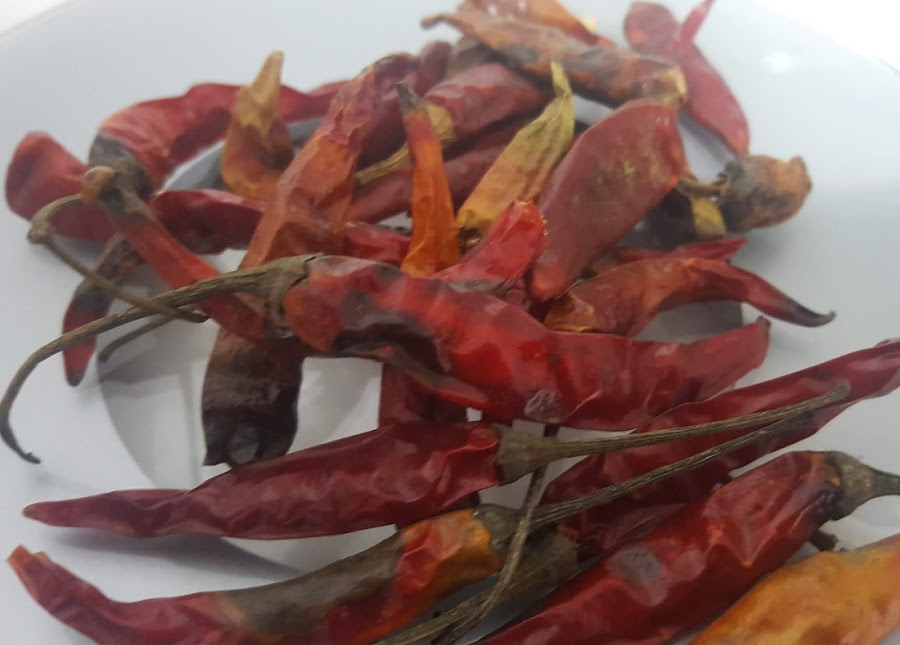 Unas las tengo secando para ponerlas envasarlas en tarritos porque por el tamaño son como las cayenas, pero tenía también guindilla verde y por fin, me he decidido a hacerla. No la he probado, pero los catadores me han dicho que está en su punto. Y debe de estarlo porque se han puesto un poco colorados jajajaja.