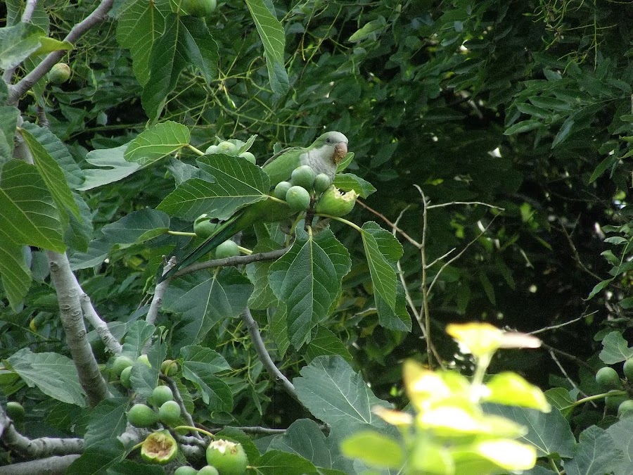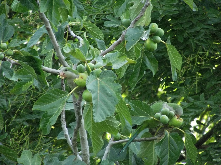 Y al parecer no soy la única a la que le gustan los higos! como todos los veranos estas lindas cotorras vienen y me comen los mejores.