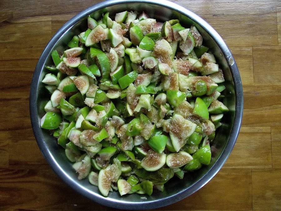 Lavar los higos y cortarlos primero a la mitad y luego en cuadraditos,