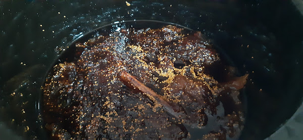 1.- Lavamos los higos, los troceamos y los colocamos en el recipiente de la crockpot, junto con el azúcar moreno y la canela.