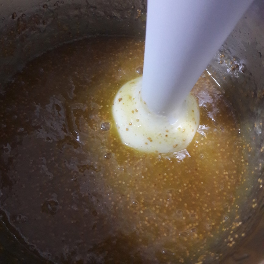 Transcurrido ese tiempo colocamos la cazuela en en fuego y lo dejamos cocer durante 30 minutos, removiendo de vez en cuando y desespumando. Cuando haya espesado , retiramos la mermelada del fuego y la trituramos con la ayuda de la batidora o con el pasapuré.
