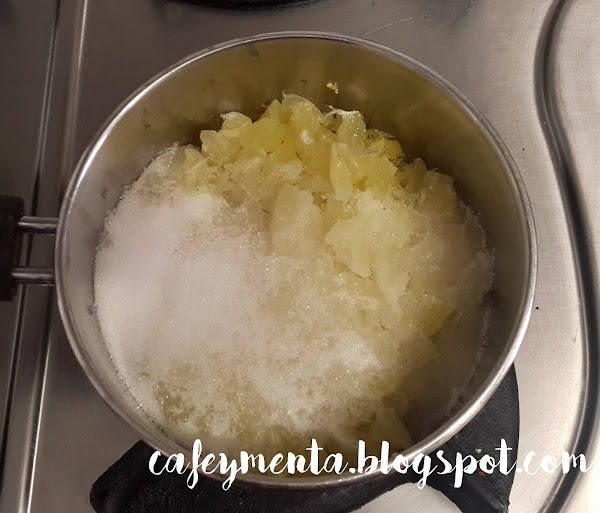 Lavamos los limones, y cojemos dos de ellos y los rallamos. El resto, los pelamos y quitamos la parte blanca, que suele amargar el sabor. Separamos los limones en gajitos, y nos aseguramos de que no quede ningun hueso. Luego los troceamos un poco con unas tijeras, y lo colocamos junto con la ralladura y el azúcar en la sartén donde cocinaremos nuestra mermelada.