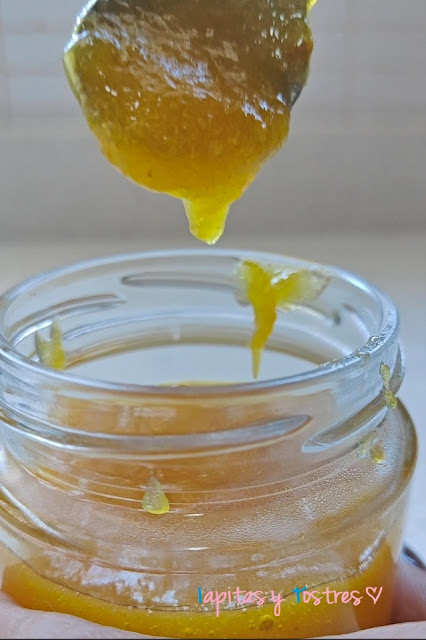 Una vez finalizado el proceso añadimos la media hoja de gelatina neutra previamente hidratada (si queremos que nos quede más espesa) y batimos 10 segundos a velocidad 4, luego esperamos que baje la temperatura y trituramos unos 15 o 20 segundos a velocidad 6. Comprobamos si tiene la textura que nos gusta (hay quien le gusta muy fina o quien prefiere con "grumos") y vamos a verter en tarros de cristal que previamente habremos esterilizado.
