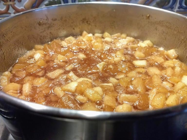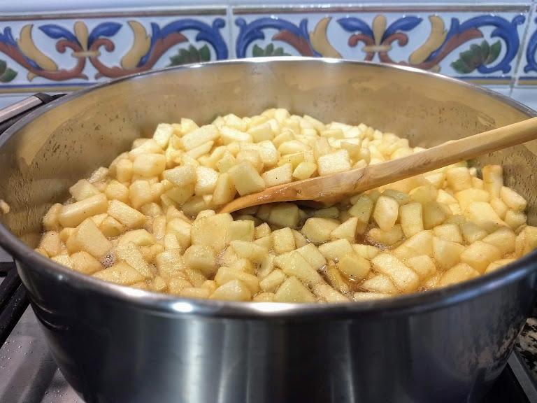 Echad la manzana en maceración en una olla y dejad a fuego muy lento durante 45 minuto o hasta que alcance la consistencia que os guste. Removed con una cuchara de madera de palo largo frecuentemente.