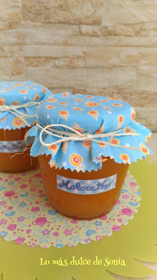 En un cazo, ponemos el melocotón troceado con el azúcar y dejamos que repose