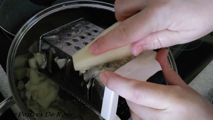 2º. Rallamos el melón directamente en la cazuela que vayamos a usar (si lo preferís, podéis trocearlo pequeño).