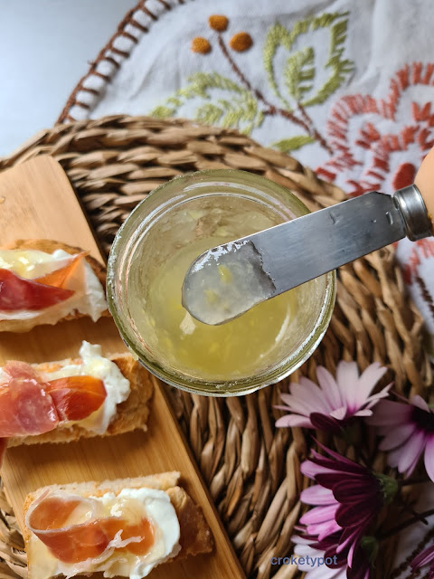 Para esta tapa hemos preparado una mermelada de melón con jengibre, que resulta verdaderamente exquisita y es una forma estupenda para conservar los sabrosos melones de los que disfrutamos en verano.