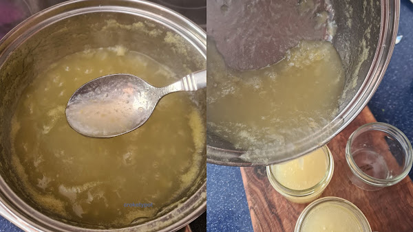 Preparamos unos tarros de cristal esterilizados, llenamos hasta el borde y volteamos los botes para que hagan el vacío. Dejamos enfriar.