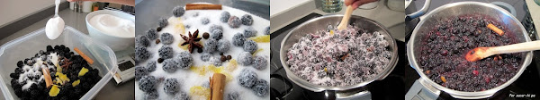 Tengo un par de kilos y hay que darles salida, así que empezamos por una tradicional mermelada de moras, esta vez con un toque de especias. Le hemos añadido canela, anís estrellado, pimienta de Jamaica y piel de limón, con un resultado espectacular (como podéis comprobar en la foto del final).