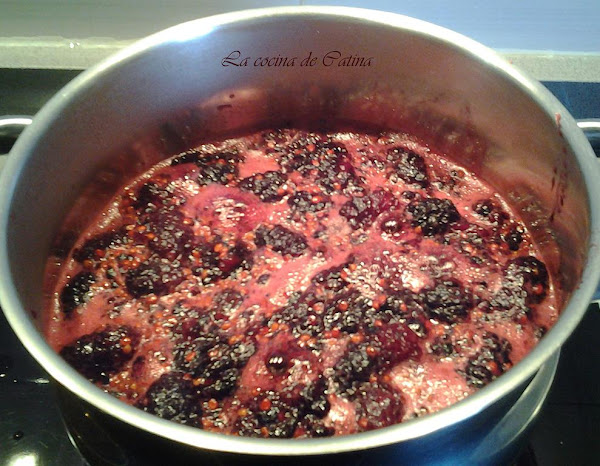 Esta mermelada de moras la he cocinado con unas moras que mi Sofia (mi nieta) recolectó en el campo de su abuelo Simón.