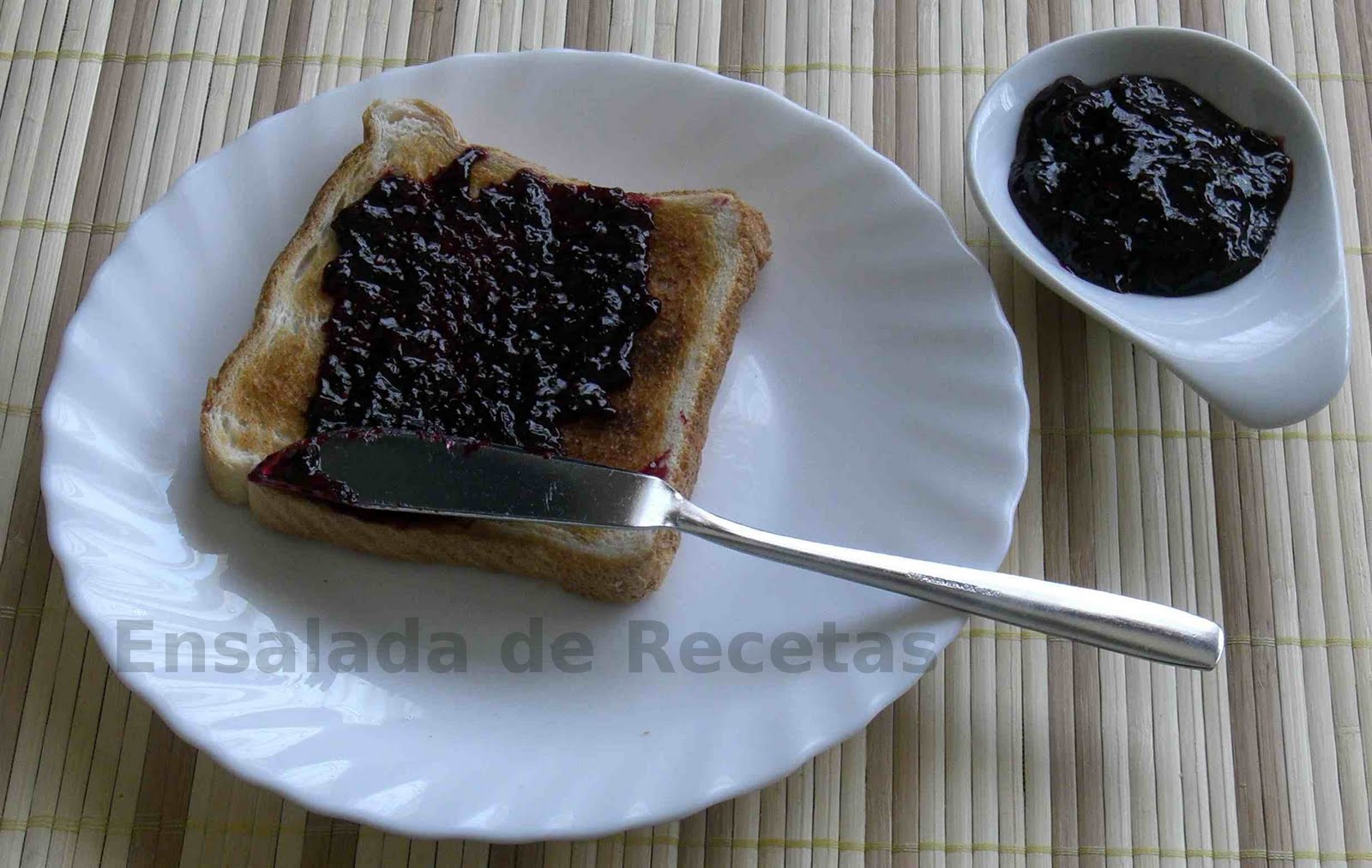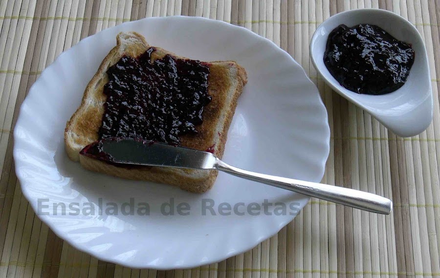 Como todas las mermeladas, es de lo más sencillo. Después de lavar bien las moras las pesé y agregué la mitad de su peso en azúcar. Para que fuera más sencillo trituré bien las moras antes de ponerlas al fuego, así se pega menos a la batidora. Añadí un chorro de zumo de limón y lo puse al fuego, removiendo para evitar que se pegara. Una vez que adquiera la consistencia que os guste, la retiráis del fuego y la vertéis en el recipiente en el que la vayáis a conservar. Como yo no hice mucha, para dejar algunas moras para otras recetas no necesité preparar los botes para conservarla, si hacéis suficiente para almacenar, acordaos de hervir los botes y las tapas al menos 15 minutos y dejar la conserva boca a bajo al menos 24 horas para que expulse el aire.