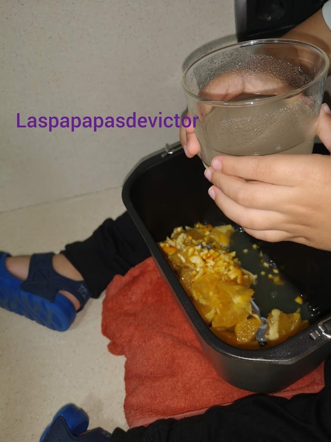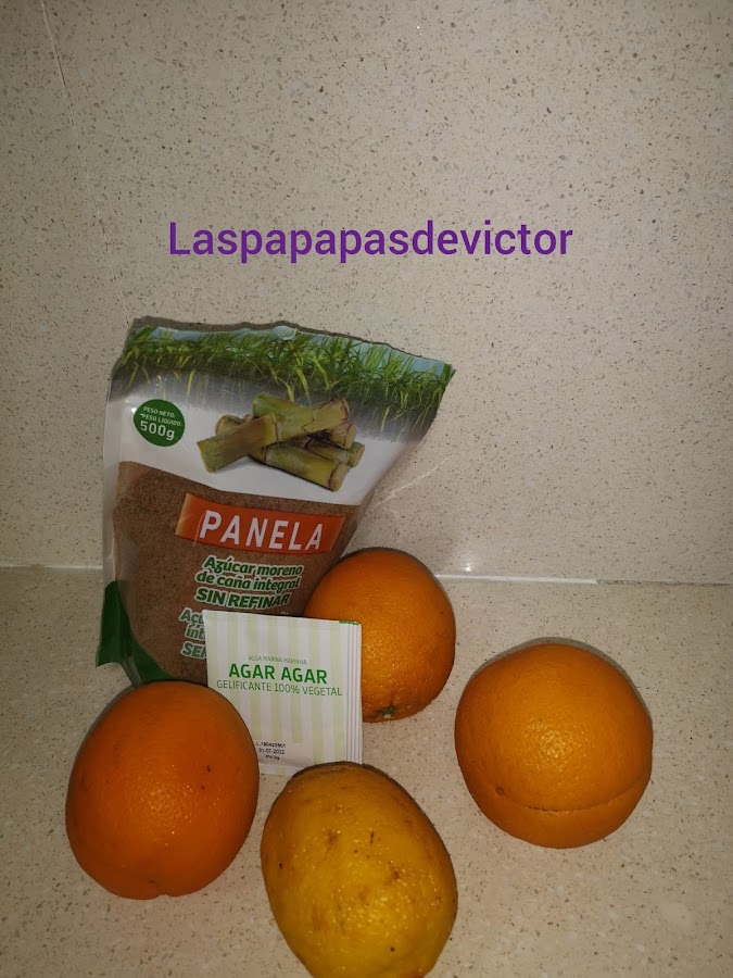 Sacar el zumo del limón, poner en un vasito los polvos de agar agar con agua y disolver, rallar o cortar la piel de una naranja puy pequeñita