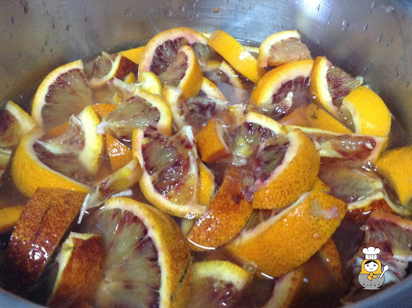 Como veis en la foto el color de la mermelada no es rojo, eso se debe a que las naranjas sanguinas tienen normalmente la piel naranja.