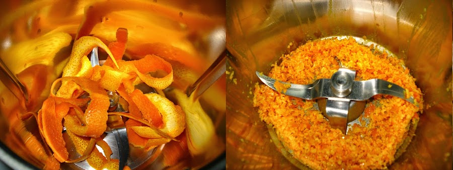 Lavamos una naranja y rallamos la cáscara, pero solo lo naranja.