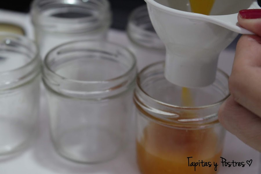 Ya tenemos los botes esterilizados y secos, ahora rellenamos con la mermelada.