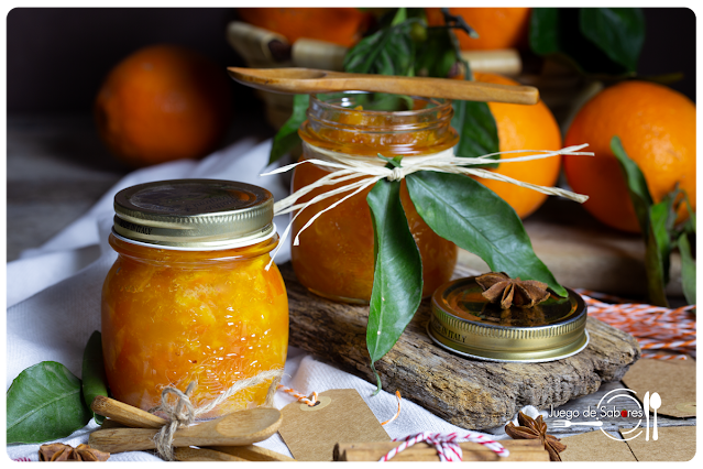 Qué raro que con lo que nos gustan las mermeladas se nos haya pasado por alto, hasta hoy, hacer una mermelada de naranja, una de nuestra favoritas. Desayunar tranquilamente un café con leche y unas tostadas colmadas de mermelada casera es todo un placer que te predispone a afrontar la jornada, no sé, de otra manera, con mejor talante. Vale, de acuerdo, algunos me diréis que con la prisas no estáis para sentaros y degustar un desayuno. !Lástima! Si queréis un consejo, aprovechad los festivos para tomaros la vida más tranquilamente. Si disponéis de tiempo os proponemos que hagáis esta mermelada de naranja que se puede tomar tal cual o bien aderezada con especias como canela y anís estrellado.