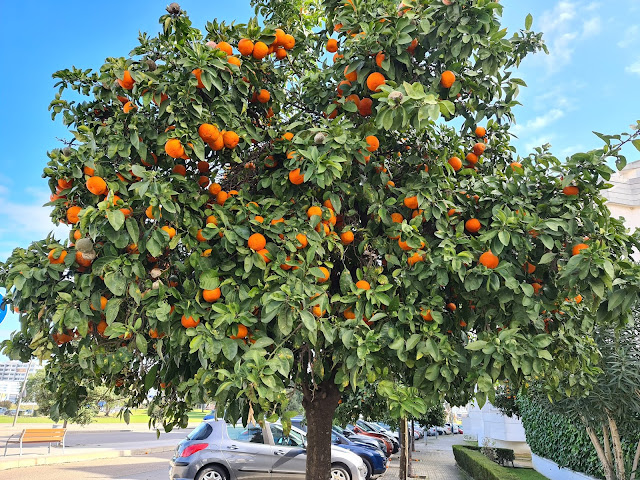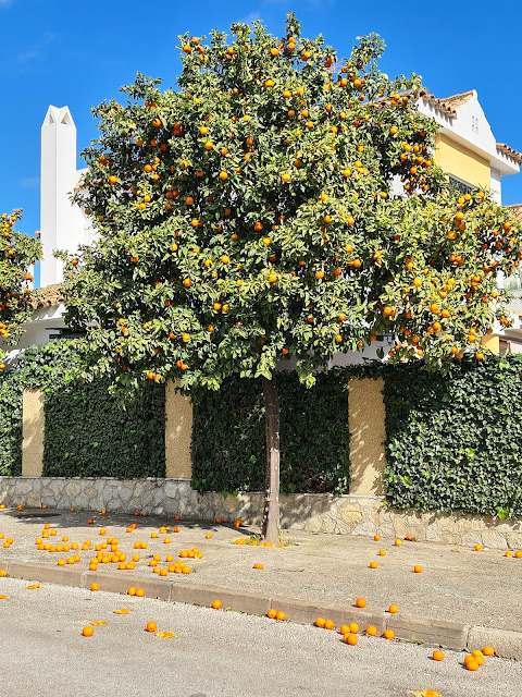 Así que dando mi paseo diario, vi varios naranjos, pero al mirar al suelo, estaba lleno de naranjas que se desaprovechan, así que, como me da pena tirar comida, cogí del árbol 10 naranjas. Total... se iban a caer...