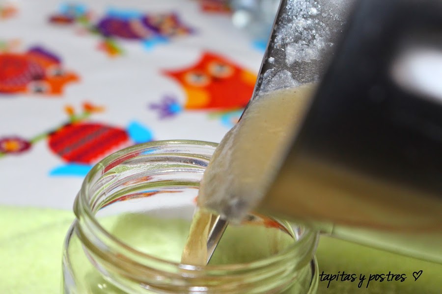 Verter en un bote de cristal que habremos esterilizado, o bien hirviéndolo o bien lavándolo en el lavavajillas.