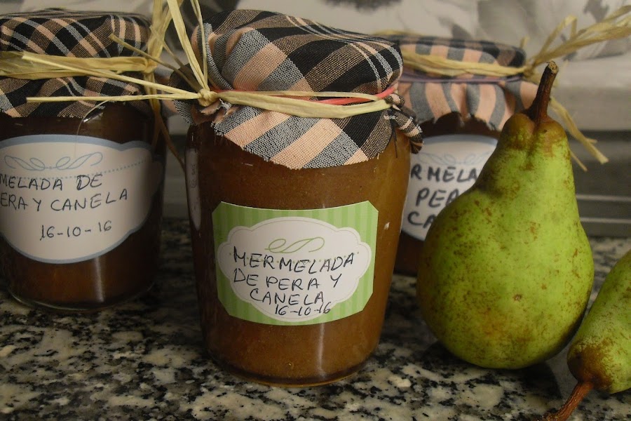 Poner en una cazuela los trocitos de pera, echar el zumo de limón, el azúcar, la canela en polvo y la rama de canela. Remover todo que se mezcle bien y dejar que se cocine a fuego lento unos 45 minutos, tener la precaución de remover a menudo con una cuchara de madera para que no se pegue.