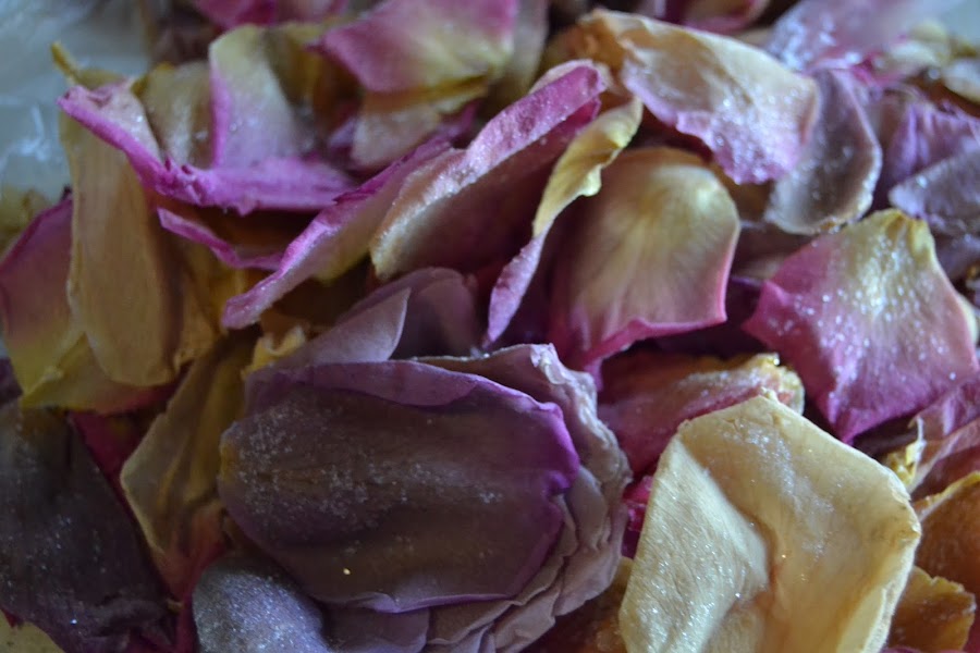 Ponemos el agua y el azúcar al fuego, dejamos que hierva unos minutos y a continuación le echamos los pétalos.