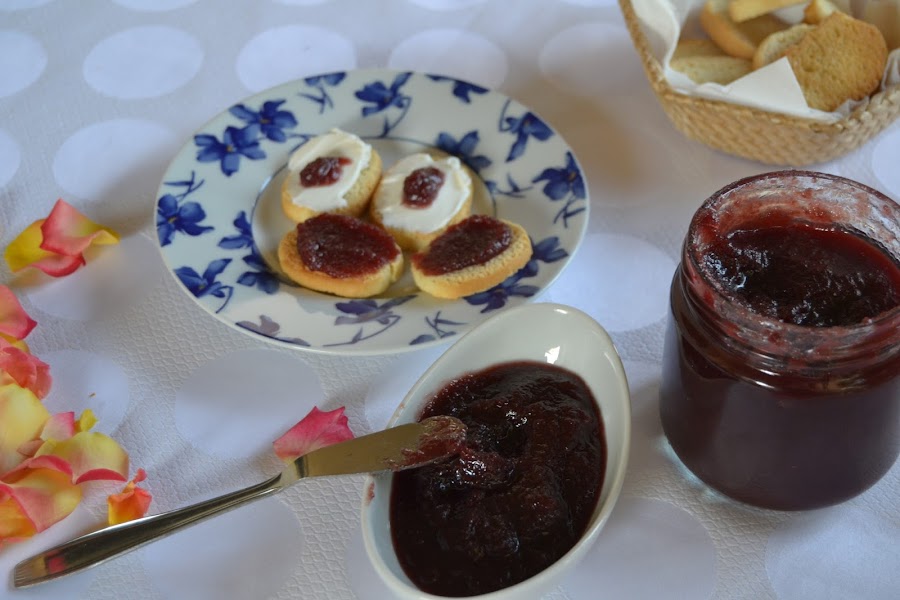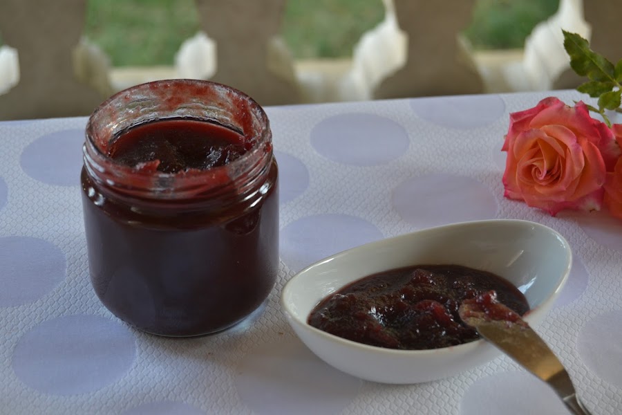 Si os habéis preguntado a que sabe esta mermelada os diré que a rosas, y huele a rosas, no podía ser de otra manera pero yo me lo había preguntado muchas veces y estaba deseando probarla. Si es verdad que se necesitan muchos pétalos, la mitad los fui congelando en bolsitas, no sabía el resultado que iba a dar pero funciono, algunos cogieron mal color en el congelador, deseché los mas deteriorados y eso no quitó sabor a esta mermelada. También he de decir que al utilizar pétalos de varios colores, el color que iba resultando no era el deseado así que añadí un poquitín de colorante rosa wilton y subsane ese contratiempo. Otro año intentare utilizar rosas del mismo color para que este salga uniforme.