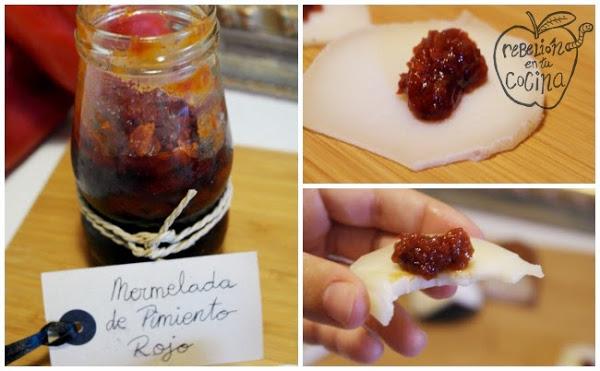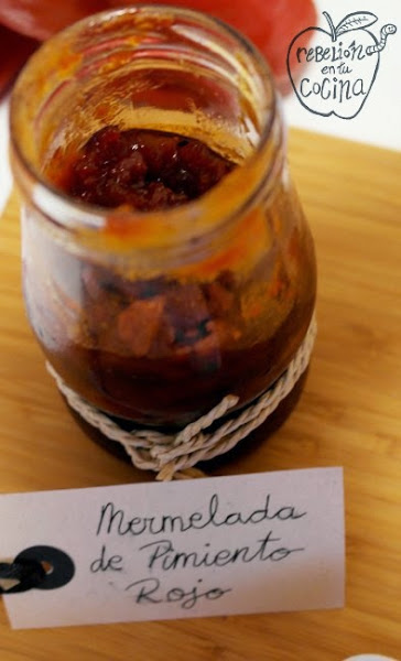 Y volviendo a la receta de hoy, que mejor que una buena mermelada de vegetales para acompañar los quesos curados. En esta ocasión he probado a hacer mermelada casera de pimiento rojo y me quedo de fábula, la suerte del principiante, supongo. He visto hacer mil veces tanto a mi abuela como a mi madre, y es que ellas usaban esta técnica para aprovechar la verdura y fruta madura que cultivamos y por supuesto para hacer conserva al famoso baño de María. Para hacerla me acorde de la frase que siempre dice mi madre "peso por peso", que quiere decir, tanto peso de fruta como de azúcar, aunque ella siempre añade la coletilla "pero mi truco es poner menos cantidad de azúcar..." prácticamente la mitad de azúcar. La verdad es que tiene lógica, como se supone que la fruta esta madura no necesitas poner tanto azúcar ya que a modo natural, ya tiene suficiente dulzura.
