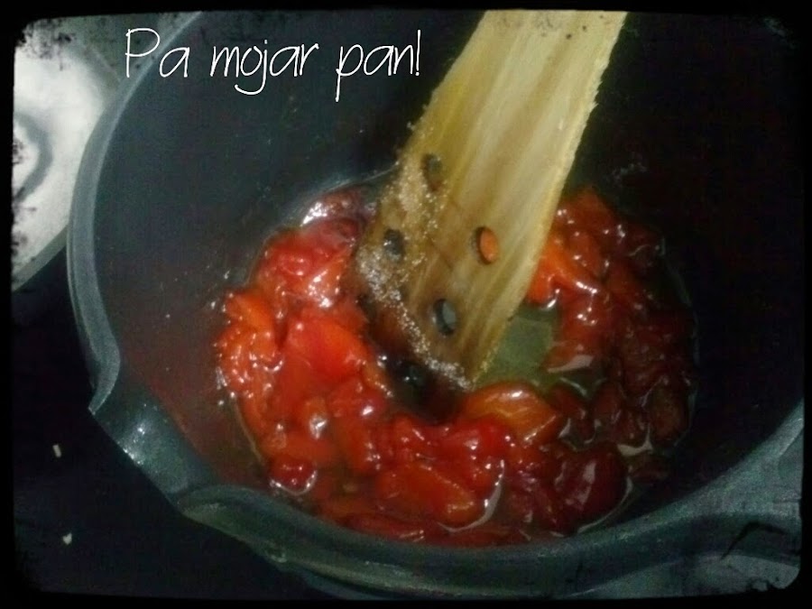 Cocemos a fuego lento hasta que los pimientos queden caramelizados.