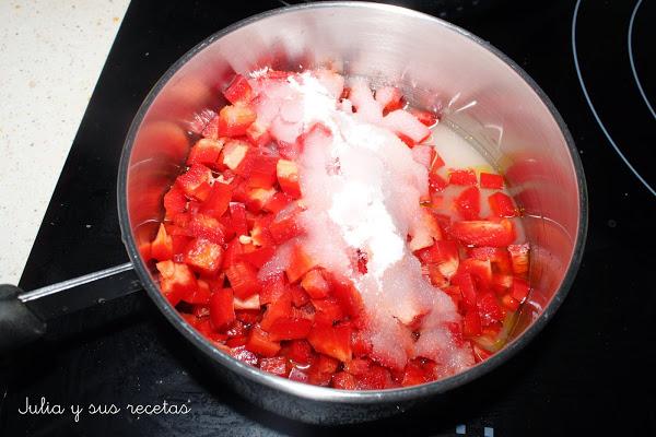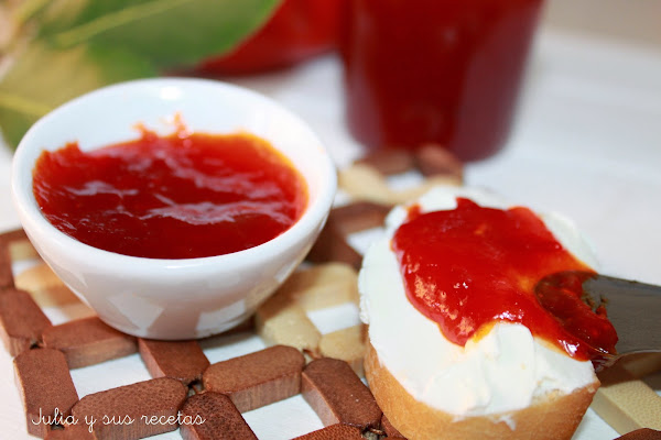 Estamos en una época en que los pimientos están en pleno apogeo, y por eso he decidido hacer una poquita mermelada de pimientos rojos.