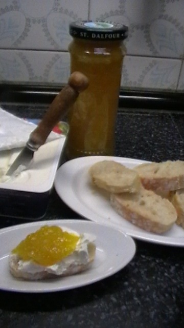........... la pasaremos por el minipimer, yo tambien intento dejar algun trocitin, vamos que no la trituro demasiado, llenaremos botecitos, que habremos esterilizado antes, como no sale muchisima cantidad, yo rellenos los botes, los giro, y los dejo asi unos dias, no los hiervo al baño maria, es que no nos da tiempo a estropearse..... jajajajajja aqui nos la comimos con un poquito de queso de untar...........