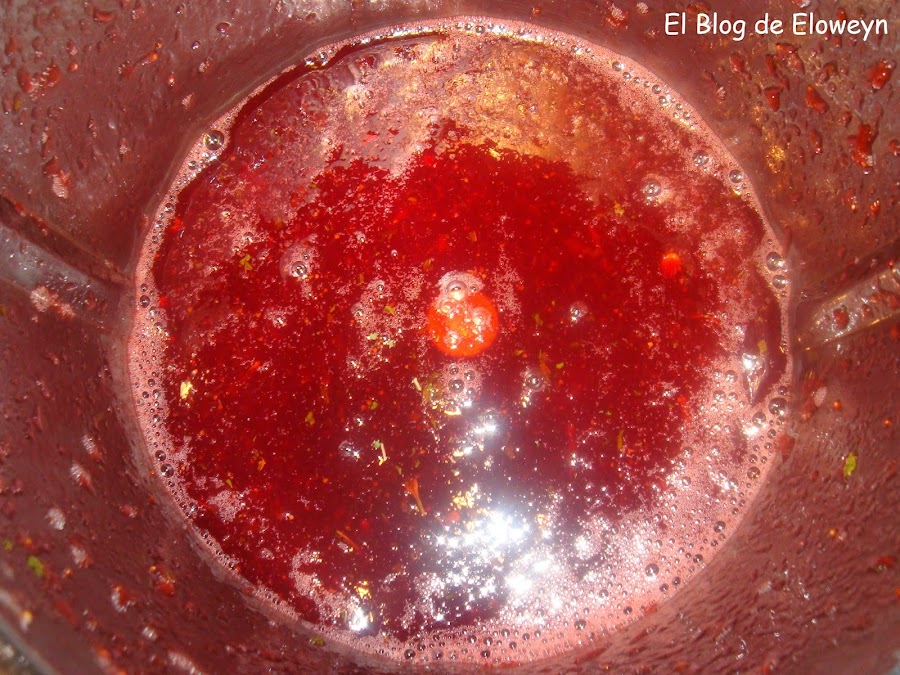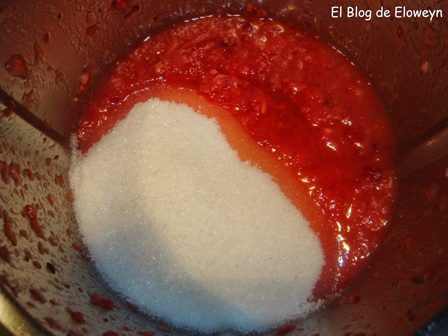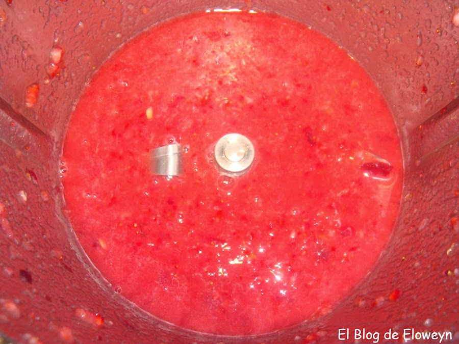 Y vosotros diréis... Sí, pero no sé cómo deshuesar las cerezas... Se puede hacer con la thermomix, poniendo las cerezas en el vaso y programando unos segundos a velocidad 3. Después se tienen que ir sacando los huesos y es un poco rollo.