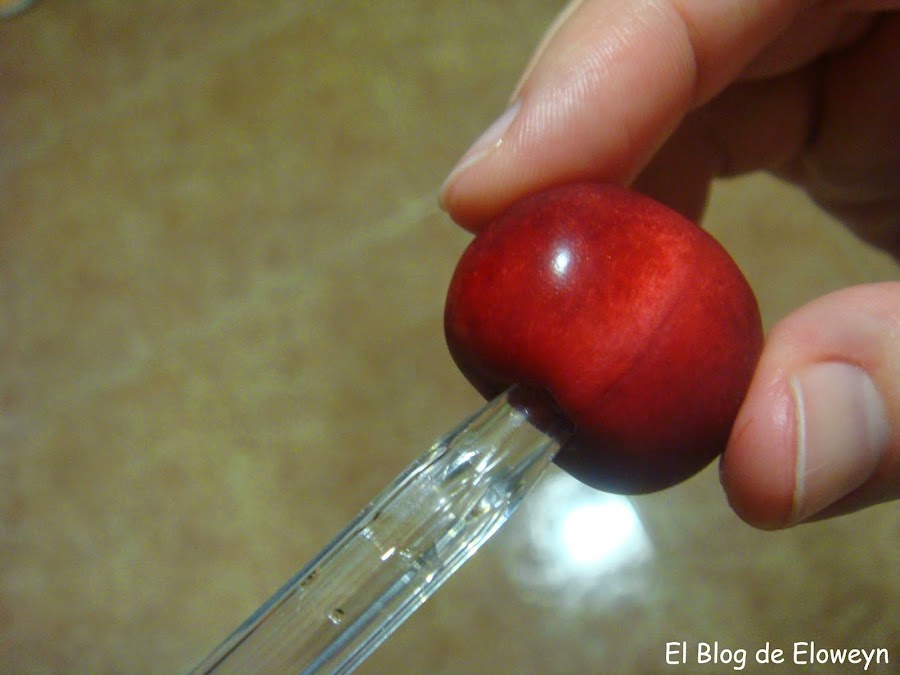 Como son sólo 100 gramos de cerezas deshuesadas, no es mucha cantidad y las podéis deshuesar a mano con vuestro super deshuesador de cerezas de diseño que tenéis todos en casa. Sí, me habéis leído bien. Puedo apostar con todos vosotros que en vuestras casas tenéis al menos un "deshuesador" de cerezas de diseño... aunque no lo sepáis... jajaja