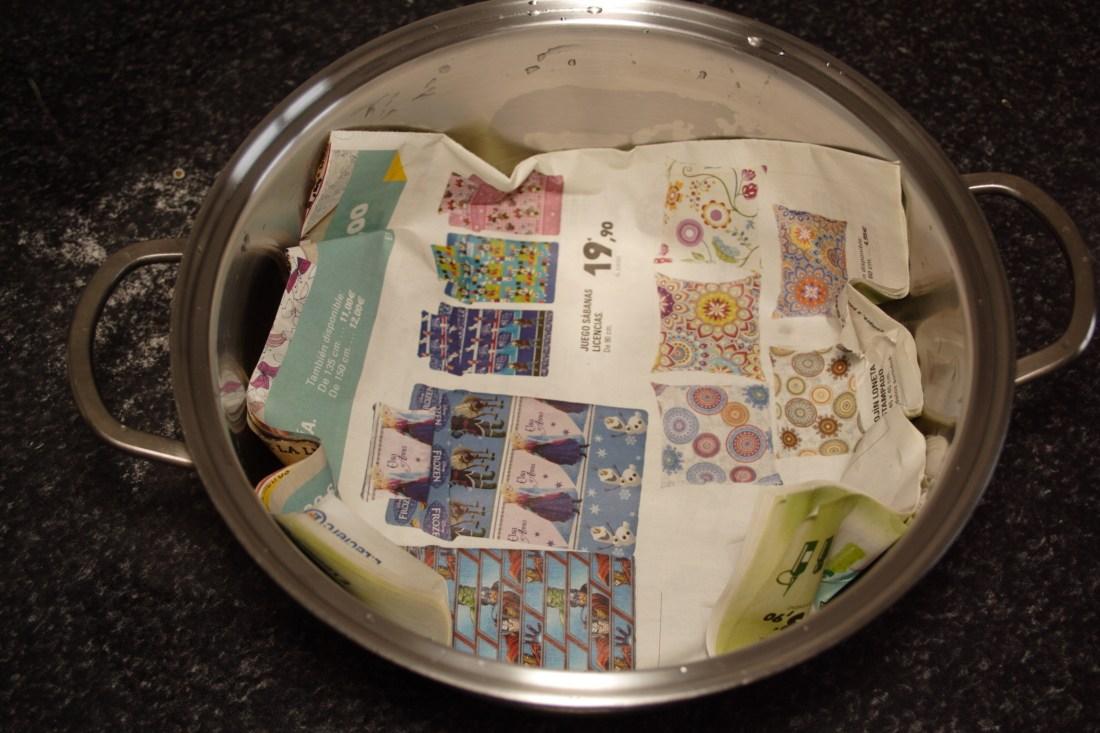 Los dejamos enfriar dentro del agua, sacamos y los colocamos boca abajo sobre un papel, con el fin de comprobar que están bien cerrados y no vierten el contenido.