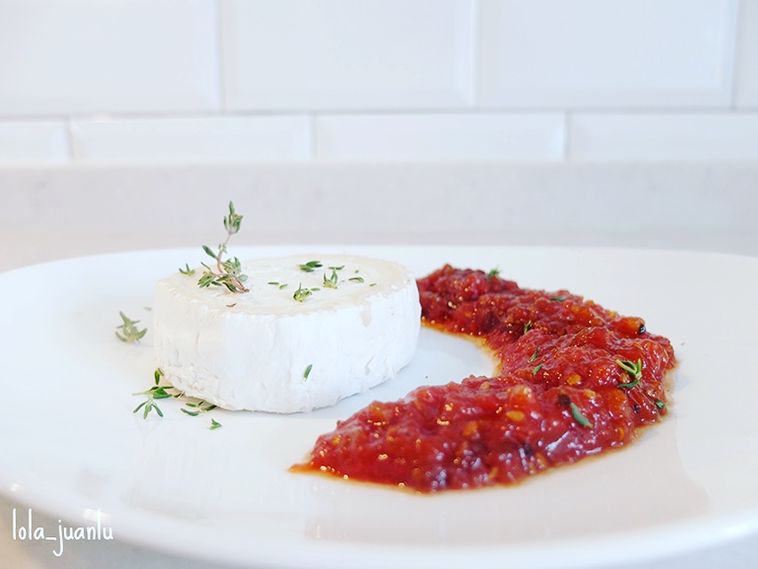 O podemos usarla para un aperitivo original y sencillo como puede ser un rulo de cabra acompañado de un poco de este preparado.