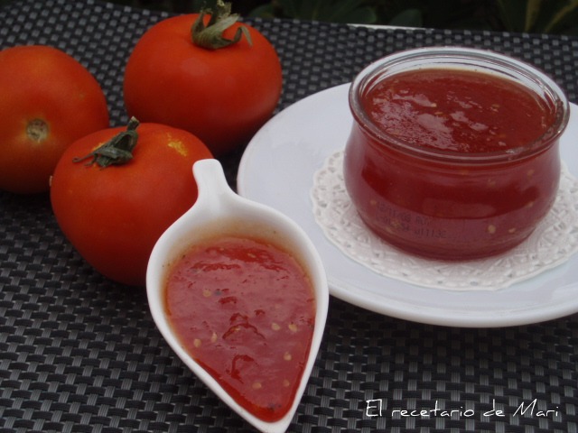 No me gusta la mermelada de tomate que venden en las tiendas. Cuando vi esta receta en el blog de Tapitas y Postres, lo primero que pensé ¿y si la hago y me gusta? y como mi amiga Mary José lo pone todo tan fácil me anime a hacerla y me encanto ¡¡ESTA BUENISIMA!! Animaros a visitar su blog os van a encantar sus recetas, yo tengo ya muchas apuntadas para hacer.
