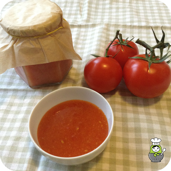 Primero escaldamos los tomates para quitarles la piel con facilidad. Nosotras la hacemos con pepitas pero si no queréis encontrároslas, debéis quitárselas también, lo que es bastante trabajoso (en este caso debéis tener cuidado de no dejar sin pulpa el tomate).