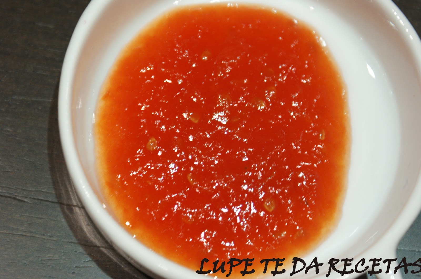 Escaldar los tomates en agua hirviendo durante 30 segundos, escurrir y pelar. Va a ser fácil porque al escaldar se desprende la piel sin esfuerzo. Retirar las semillas , la mayoría de la gente prefiere quitárselas todas pero a mí me gusta encontrarme alguna, así que le quito solo parte de las semillas.