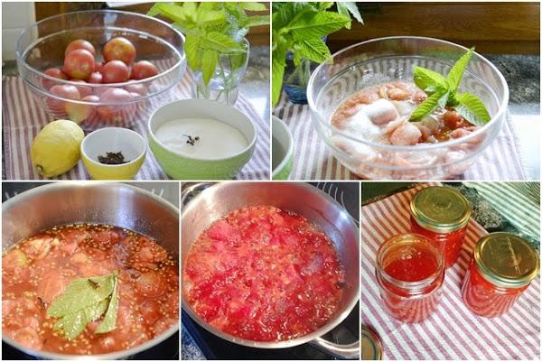 Mermelada de tomates con menta fresca