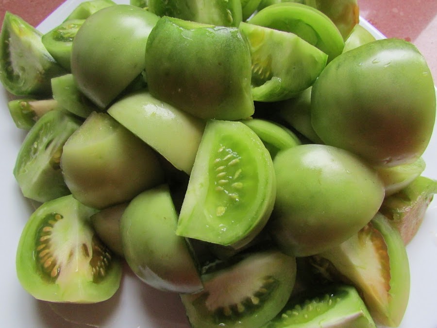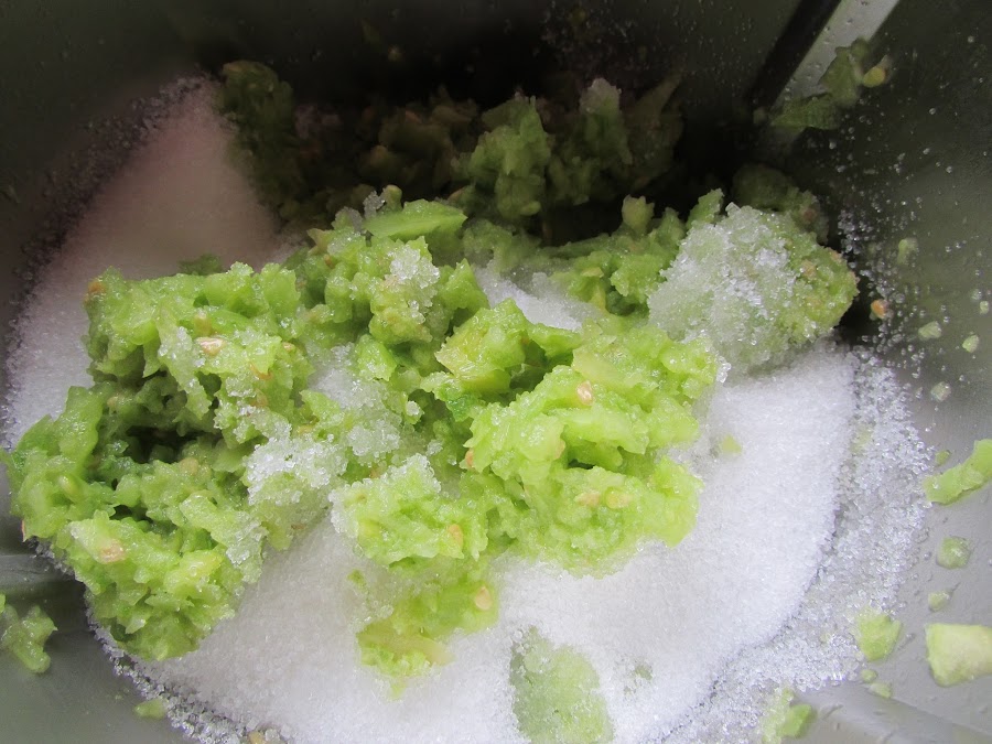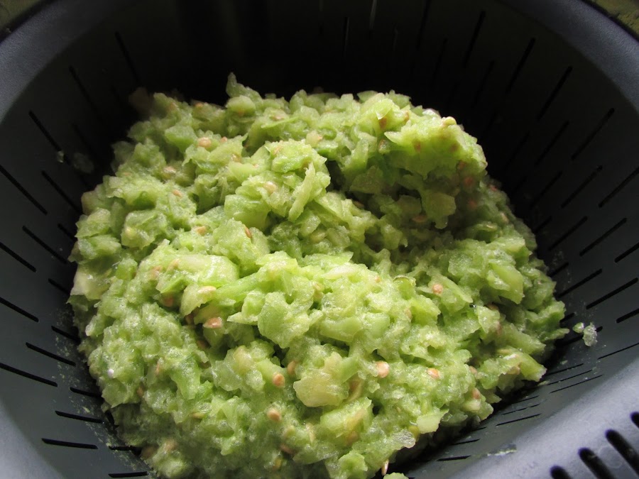 Ponemos los tomates verdes triturados a escurrir unos minutos en un colador,