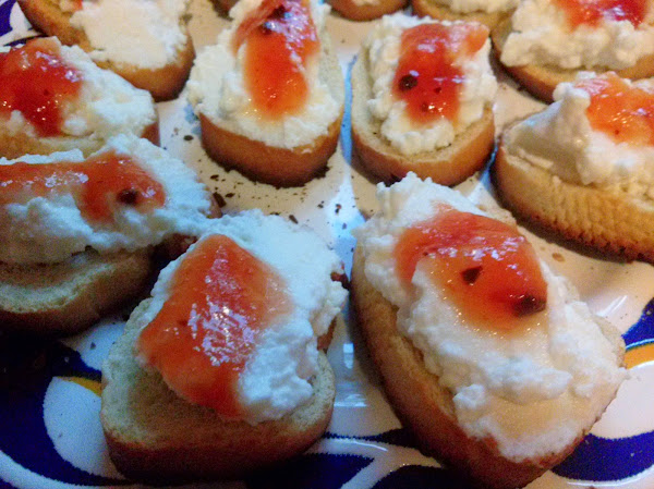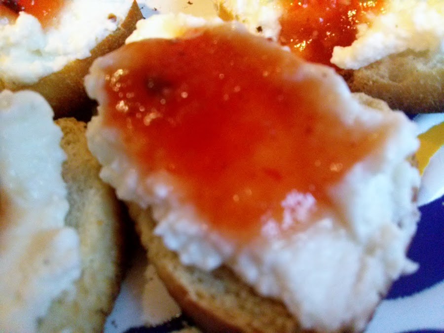 Para empezar a probarla : ¿ Qué os parece estas tostaditas con Ricotta y mermelada de tomate?