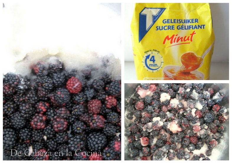 Si tienes maquina de pan, (la del Lidl) poner dentro todos los ingredientes, poner la maquina en programa 11 que es de mermeladas y ya esta, la maquina sola la deja en el punto.