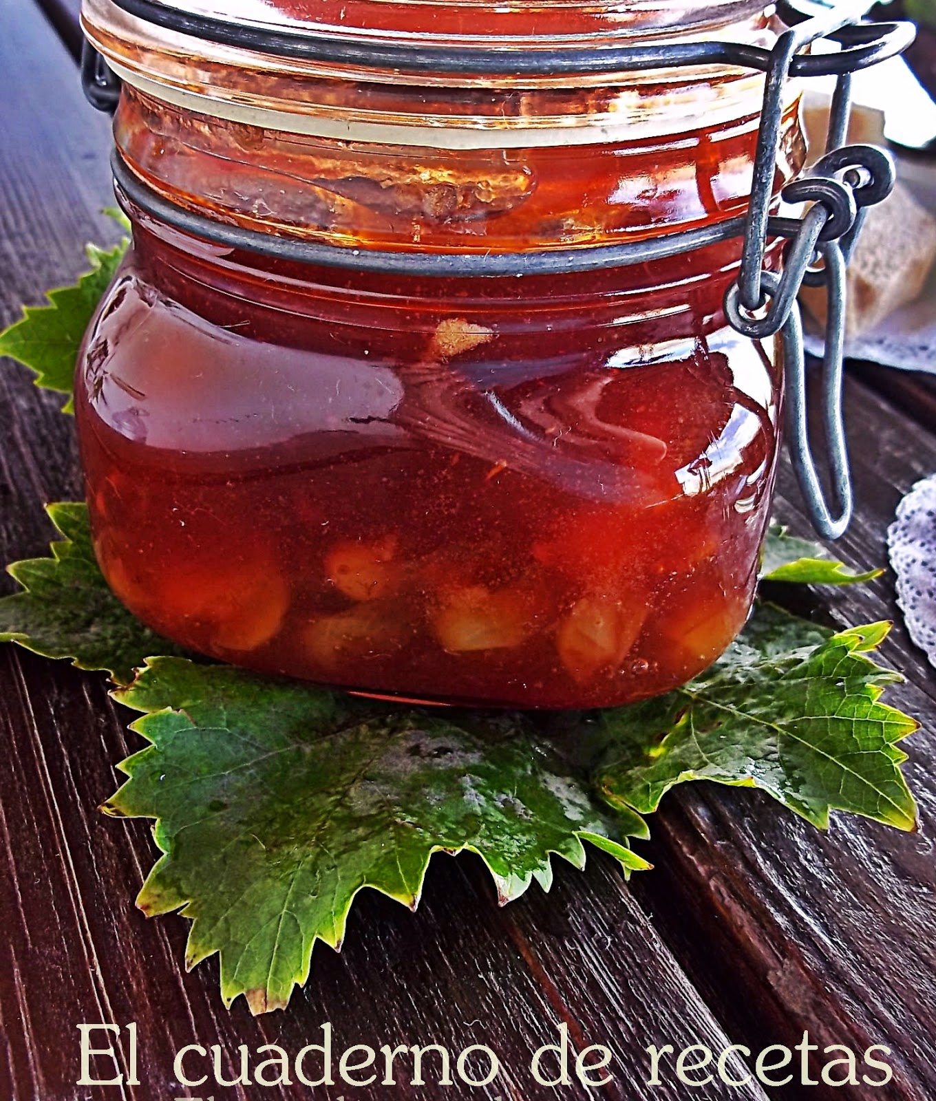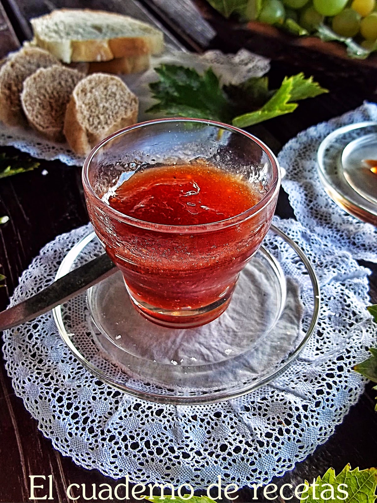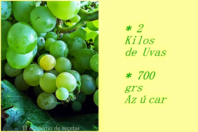 * Esta mermelada podéis hacerla, cuando el último día del año{vamosl el 31 de Diciempre de toda la vida}, os reunís en casa y cada uno se presenta con un racimo de uvas porque no os habíais puesto de acuerdo, después hay tantas en el frigo que no sabe una qué hacer con ellas. Y ahora, que es temporada de uvas, si algún vecino, prima o amigo se presenta en tu casa con unos buenos racimos, no lo dudes y hazte unos botes de mermelada.
