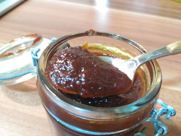Pues sí....mermelada y picante todo en la misma frase...sorprendente, no? pues está estupenda! para quien le guste la comida picante, claro...la mezcla es estupenda dulcipicante....y como ya no sé como explicarlo, os recomiendo que la hagáis y me contéis qué os parece. La receta es de Lorraine Pascale, descubierta por casualidad hojeando libros...y es de esas recetas que te llaman y no puedes pasar sin ponerla en pendientes.