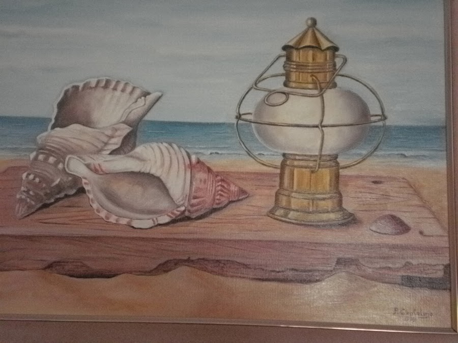 Les dejo un poquito de ella en ésta entrada un plato de un magnifico pescado: mero y una preciosa imagen de una playa andaluza, gaditana, pintada por mi suegro y que disfruto cada dia.