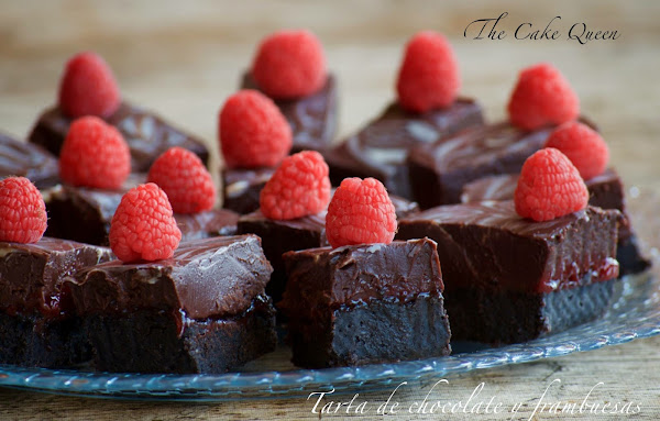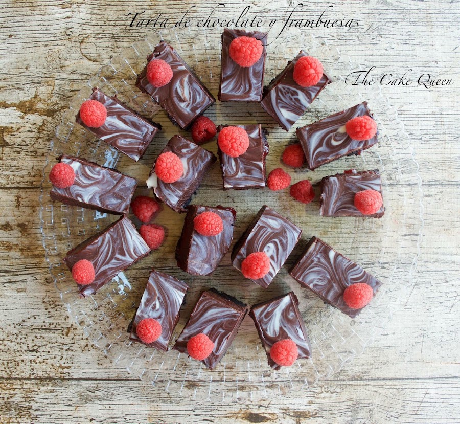 8. Añade ahora el chocolate. Si lo deseas puedes añadir las frambuesas para decorar y darle mas sabor al mismo.