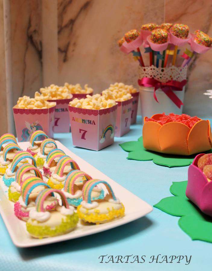 Esta vez la temática era los My Little Pony y como no podía ser de otra manera esta mesa tenía que ser muy colorida y no podía faltar el arco iris.